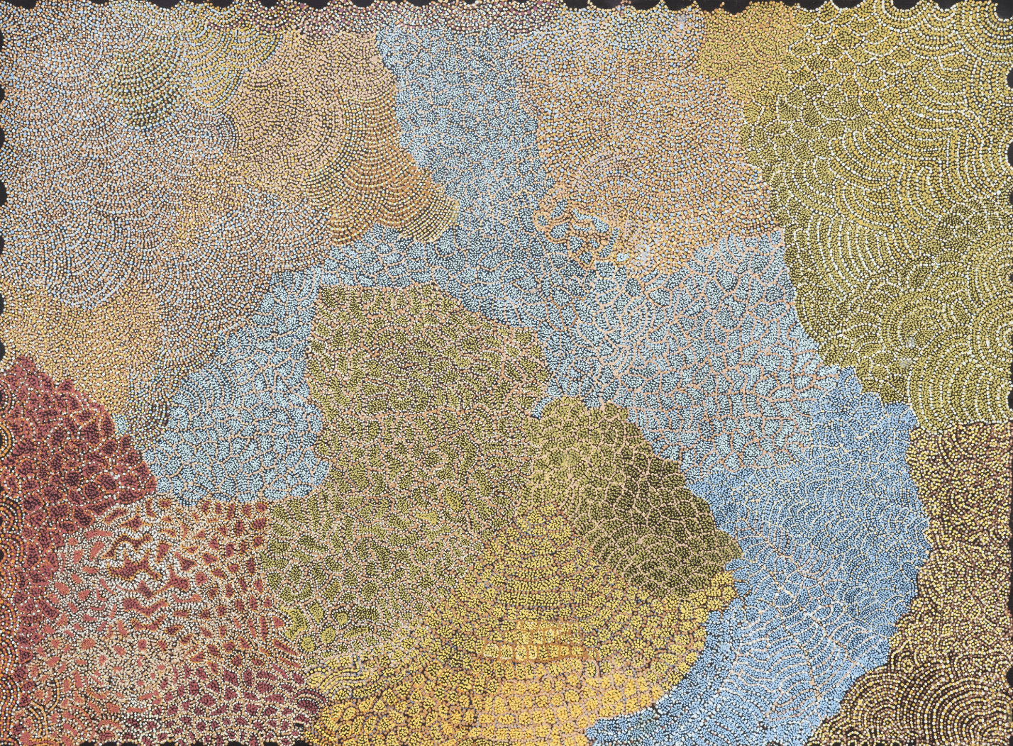 This collaborative installation of twelve remote Indigenous art centres from the Top End, Central Desert, and Western Australia showcases the immense talent, richness of culture, and diversity of art practices emanating from remote Australia – from intricate bush string weavings and fibre mats to vibrant acrylic paintings, earth-pigmented barks, and carvings.